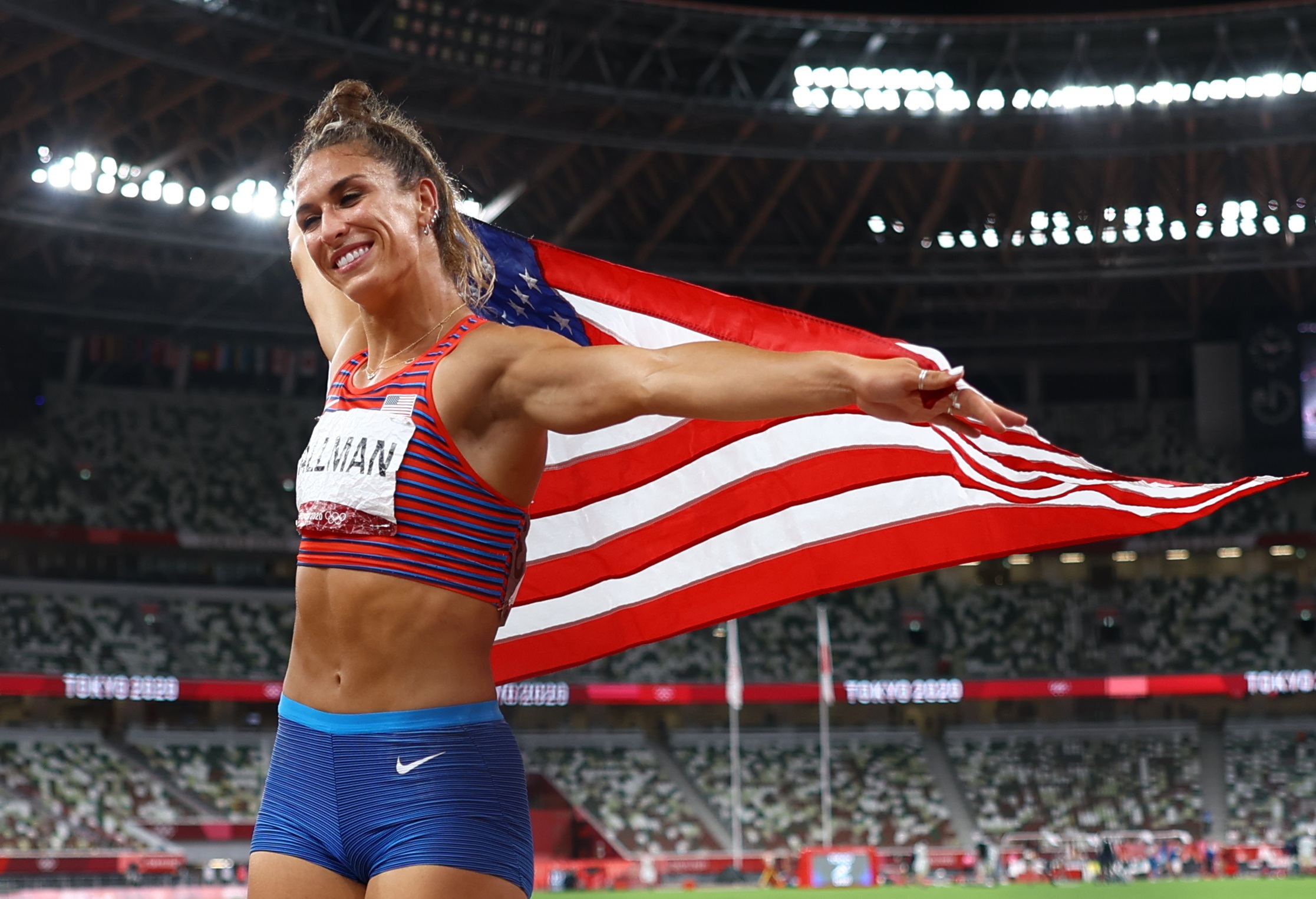 Discus thrower valarie allman won the first track and field gold medal for the united states at the tokyo games.